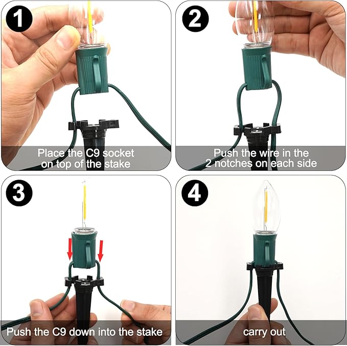 - 【Widely Use】: Christmas garden landscape path lights are perfect for lawns, gardens, yards, balconies, porches, hallways, fences, restaurant walkways, holiday parties. Vintage C9 LED Christmas light outdoor decorations light up a brightly lit path, creating a cheerful, warm and romantic atmosphere.