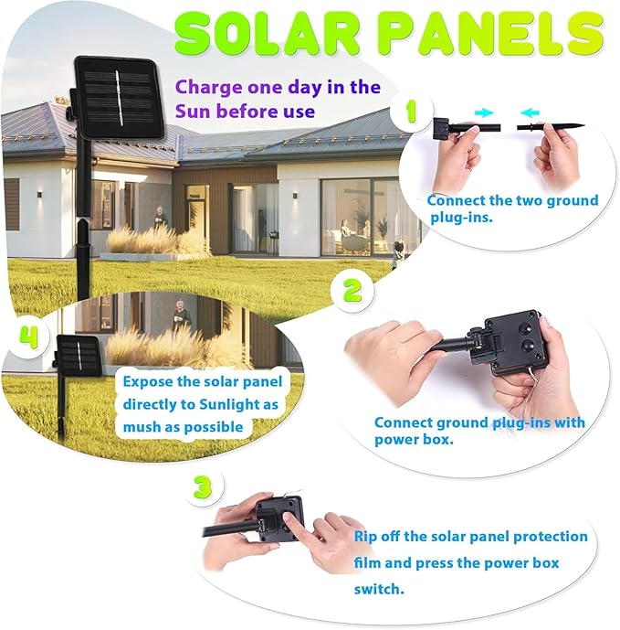 - 5. Simple and Easy Setup- Enjoy hassle-free installation with no need for batteries or electrical outlets. Just position the solar panel in a sunny location and switch on the lights. Perfect for gardens, patios, and even camping trips, these lights offer an environmentally friendly way to illuminate your outdoor areas.