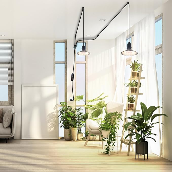Grow Light Bulbs Indoor Plants Lights Adjustable Cord,Timer, Full Spectrum Plant Growing Lamp for Seedling,Greenhouse,Seedlings (2 Lights (14.7ft))