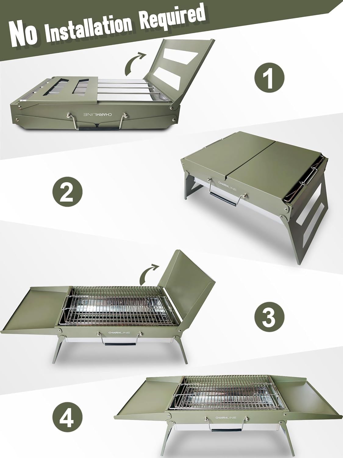 - Excellent Experience: Portable grill features a dedicated space for sauces when unfolded. Additionally, the grill net can be lifted up for easier and safer charcoal changes.
