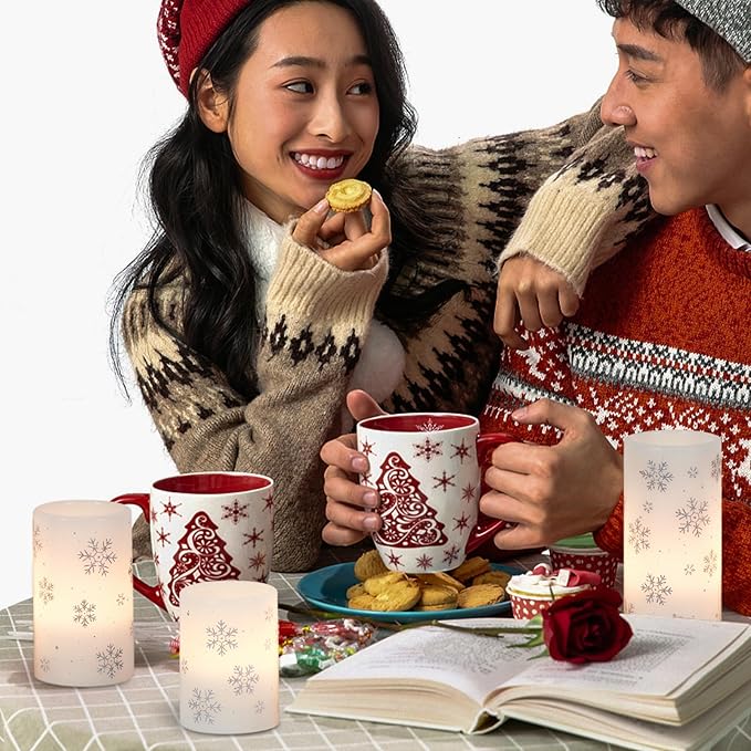 - Christmas Decorations: Silver snowflake Christmas LED candle brightens up every corner of your home, from the cozy living room to the bedroom, and even gracing the your dining table. Its flameless 3D wick keeps safety, allowing you to decorate with ease, and infusing every corner of your home with the pure joy and heartwarming of Christmas