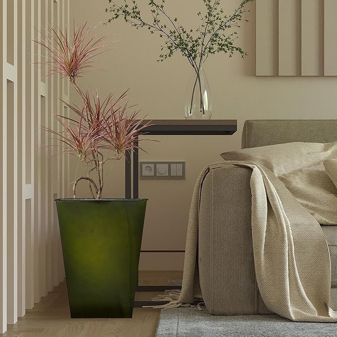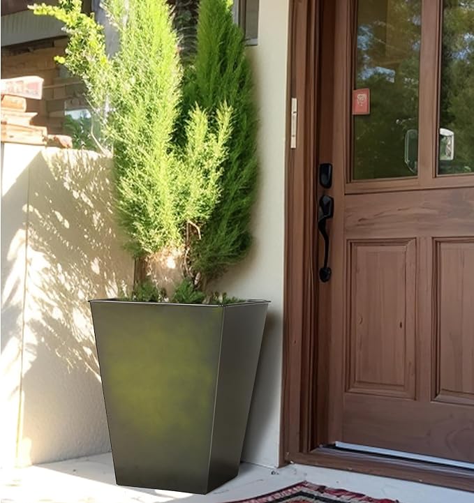 KOL 18''H. Bright Glazed Planter with Drainage Hole, Set of 2, Galvanized Steel Planter Pots for Indoor & Outdoor Use, Decorative Flower Plant Pots for Front Porch, Patio, Deck - Green