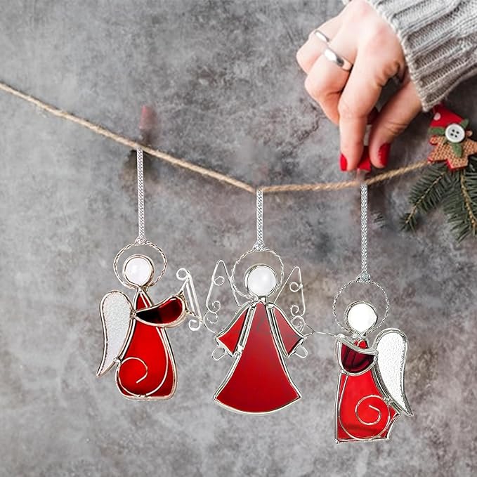 - 🎄【Easy to Hang】- Each stained glass Angel suncatcher ornament comes with a metal ring, you can use a string to hang it anywhere you want to decorate. It's a hassle-free way to add a beautiful touch to any space.Wherever the place is - Christmas Tree, glass doors, kitchen window, upstairs windows, circle-head window, front window, bedroom window, kitchen door or as welcome signs on hanger stands.