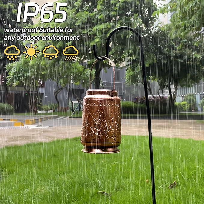 - Durable Lanterns Solar Lights outdoor IP65 Waterproof Construction: Crafted with durable, weather-resistant materials, the lantern can withstand exposure to rain and moisture,the dog outdoor lantern is made of metal which is sturdy and durable. IP65 waterproof rating design, don't worry about rain, solar garden lights can work on rainy days, Solar lantern power supply, no electricity charge, no power cord required, easy to use.