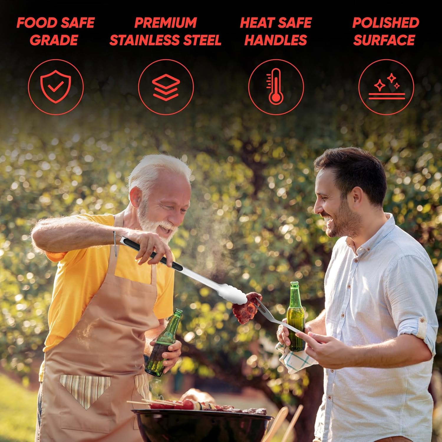 - [High-Quality Stainless Steel barbeque grill accessories]:Grill set for outdoor grill is made from premium food grade stainless steel with anti-rust brushed surface,which is bpa free,high heat-resistant and rust-proof,sturdy and easy to clean.Our BBQ utensils for grill kit is built to last,you can easily enjoy grilling,camping trips or backyard cooking without worrying about your BBQ tool bending!Never rusts or cracks!