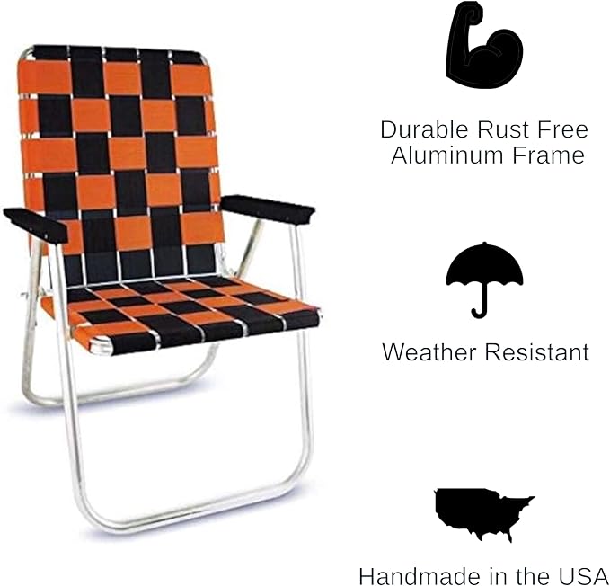 - Handmade In The USA: Our chair features hand-woven straps with a mechanical stitch for superior durability and an authentic handmade feel. Made with a sturdy aluminum frame, copolymer arms, and polypropylene webbing, ensuring long-lasting use and reliability