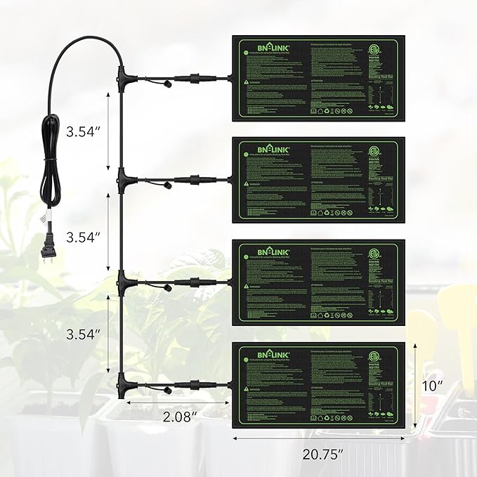 - GREAT SIZE AND SAFE: 10" x 20.75", 17.5 Watts. The mat is the perfect size for standard plastic growing tray. Each unit comes with BN-LINK’s strong 12-month warranty.