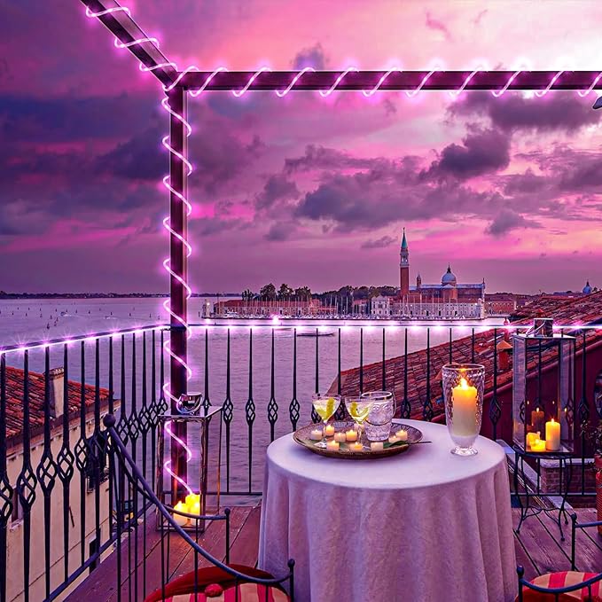 - 【Waterproof String Lights】- IP65 Waterproof, they are suitable for all weather use, remaining bright and sparkling even during strong rain and windy days. The outdoor rope lights is ideal for year-round outdoor decor and can illuminate gazebos, canopy, corridors, gardens, and patios. But please note the plug is not waterproof.