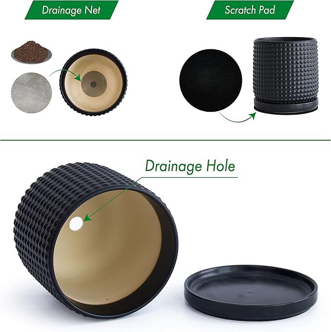 - Included: Each pot comes with drainage hole and fitting detachable drip tray.