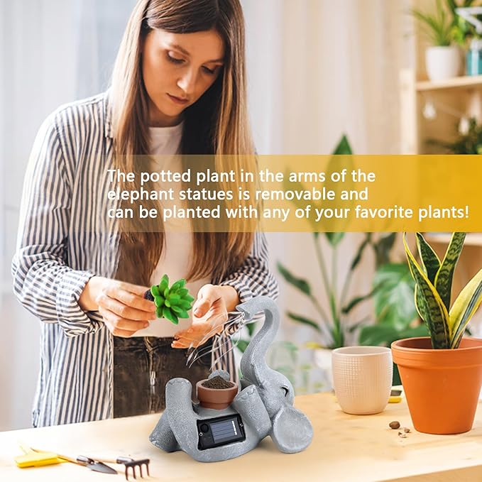 - GARDEN DECOR: This elephant statue is made of high-quality resin with solar-powered LED strings. At night, when the solar string lights up and looks like water flows, adds a warm and lively atmosphere to the garden, yard, or patio
