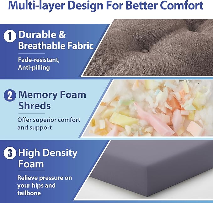 - 【Premium Memory Foam Support】: Designed with high-density memory foam for long-lasting support and comfort, our dining chair cushion offers superior comfort and support, relieving pressure on your hips and tailbone during extended seating