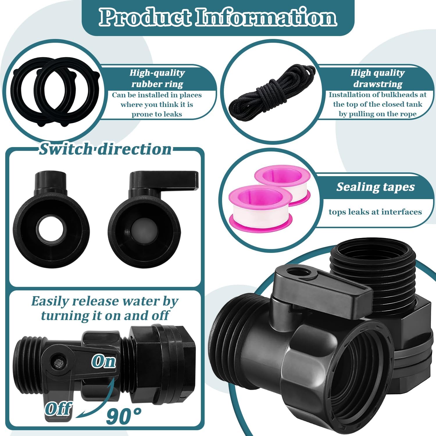 - Widely applicable: Garden hose shut-off valve+garden hose bulkhead fitting is suitable for water tanks, towers, inlets and outlets, rainwater buckets, homemade water storage buckets, as well as various pipes, accessories, hoses, faucets, etc