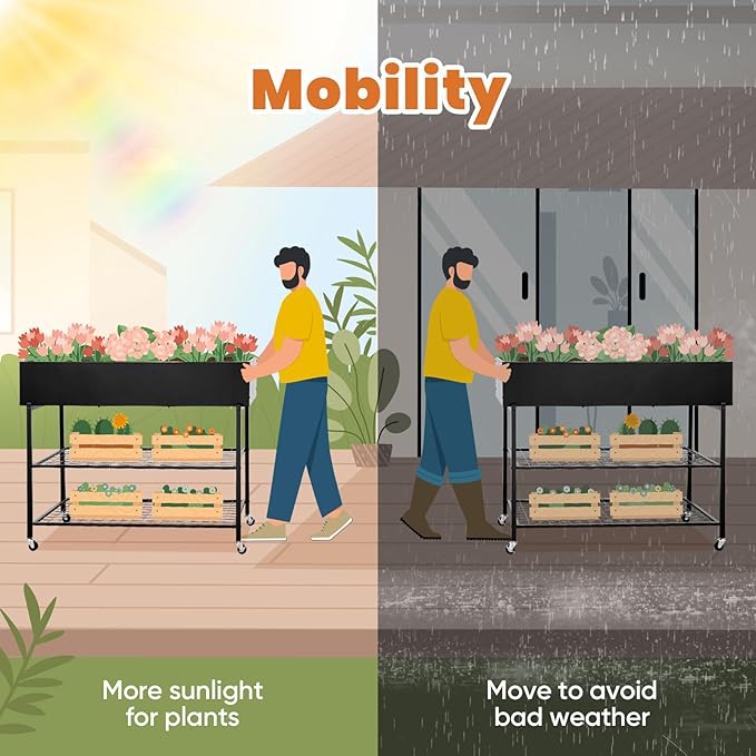- 【2 Locking Caster Wheels – Chase Sunlight or Seek Shade in Minutes】Glide effortlessly between balconies, decks, patios, and gardens with secure locks. Perfect for chasing optimal sunlight or sheltering plants from harsh weather. Ideal for elderly gardeners or renters needing flexible setups.