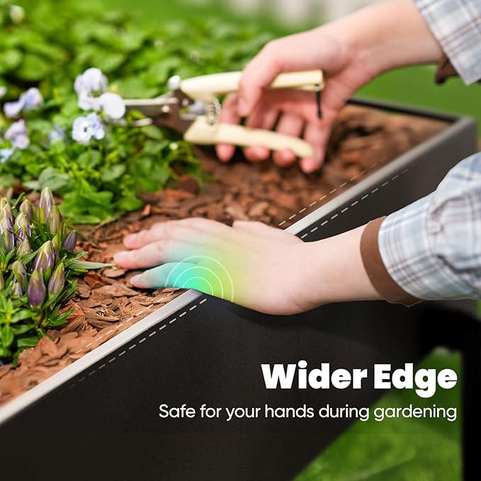 - 【38" Waist-High Design, Garden Pain-Free for Hours】Ergonomic 38-inch height reduces back strain by up to 70%. The widened smooth edge protects your hands from scratches and relieves hand fatigue. Our raised planter box is perfect for seniors, busy parents and arthritis patients.