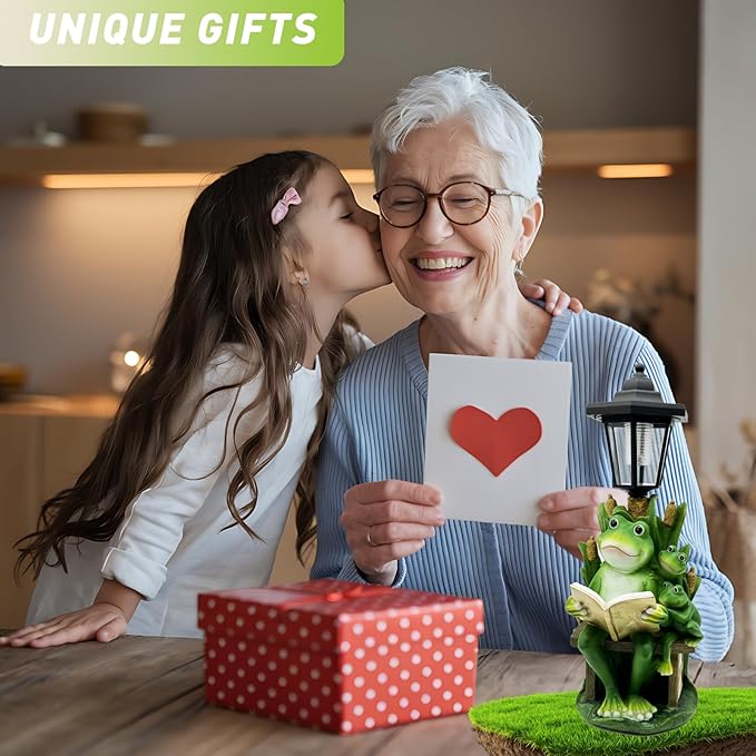 - 【POPULAR & IDEAL GIFTS】 This outdoor frog figurine is an ideal gift for housewarming parties, birthdays, Mother’s Day, or any special occasion. Its unique design and functional solar lighting make it a heartfelt and practical present for women, moms, or anyone who loves animals and garden decor