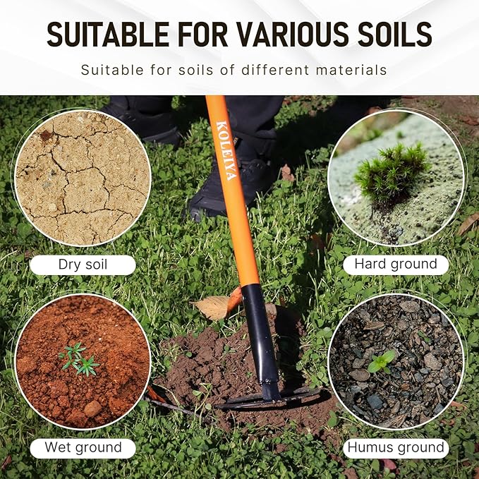 - Good Material:This gardening weed control tool features a blade that is made by high-strength stamping and has the advantages of light weight and high strength.The surface is coated with three layers of anti-corrosion coating,which extends its service life.Fiberglass handles have high toughness and strength,Will not corrode or break.
