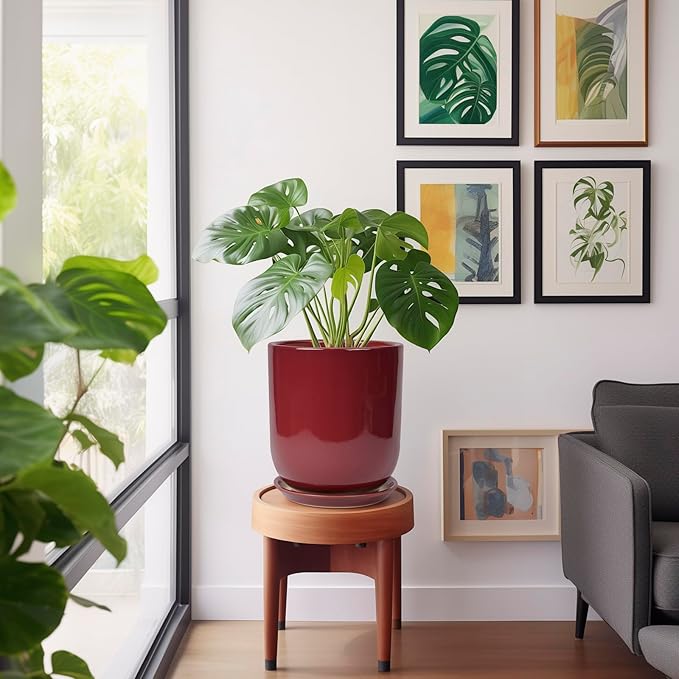 - Size of Ceramic Planter: Each ceramic pot for plants are 9.5” in outer diameter and 10.8” in height. The optimal size makes red planter an ideal home for planting monstera, money tree, ficus lyrata, olive tree, bonsai
