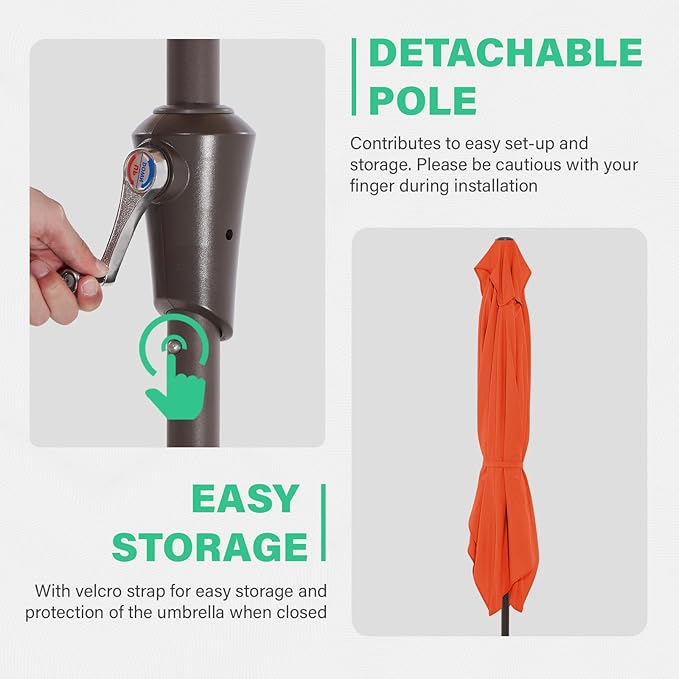 - 【NOTE】- This garden umbrella does NOT include the base shown, please purchase separately. Please refer to the product installation video to assemble.If you have any problems during the use of the table umbrella, please contact our at any time