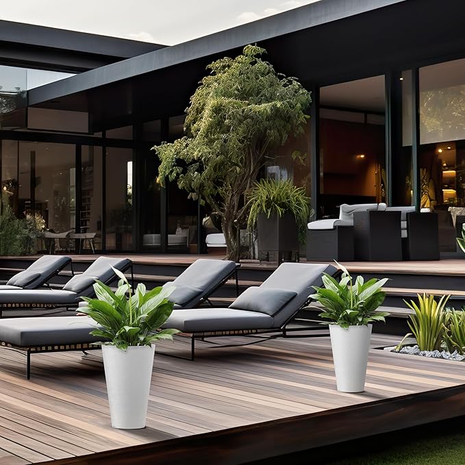 - Minimalist Chic - Elevate your space with these tall and wide planters, embodying sleek lines and a contemporary White finish—a defining trend in modern landscape design. The textured surface introduces an artistic touch to your garden, patio, office, living room, or front door area.