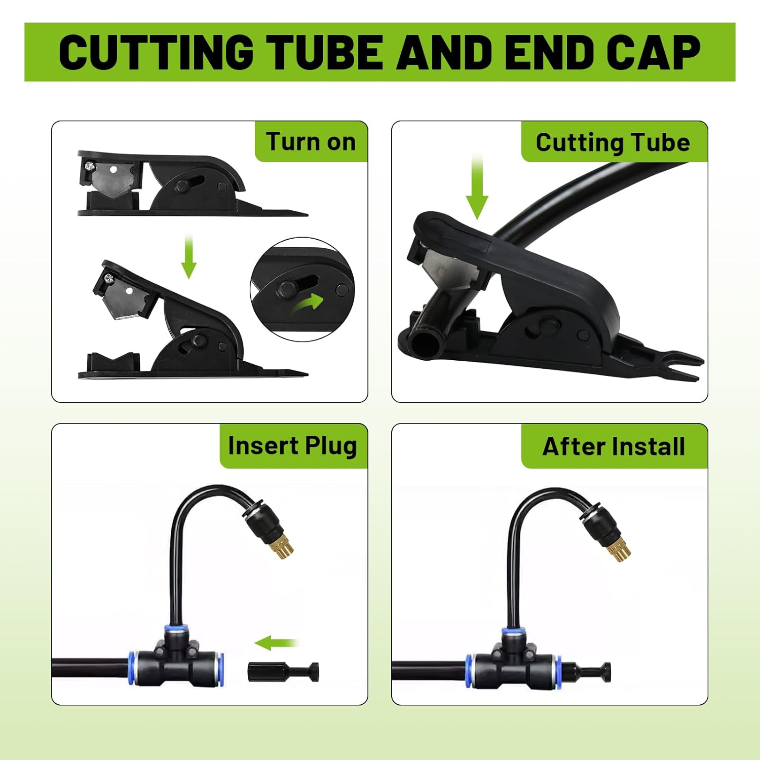 - Durable Black Water Pipe, Long-lasting and Efficient: Our garden watering system is equipped with a 100-foot sturdy and durable black water pipe, specifically designed for outdoor use. This water pipe is made of advanced anti-aging materials and has excellent anti-oxidation properties. It can effectively withstand high temperatures and extreme cold, and will not deform or break even in harsh environments. Whether it is for irrigating a large lawn or carefully tending to flower plantings, this durable water pipe can ensure a reliable water flow supply to meet all your drip irrigation needs.