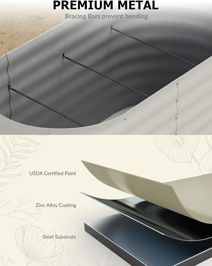 - [Open-bottom Design] The open-bottom design of the planting bed promotes root growth, improves drainage, enhances soil health, regulates temperature, reduces weed competition, facilitates maintenance, and fosters an environment for sustainable plant growth
