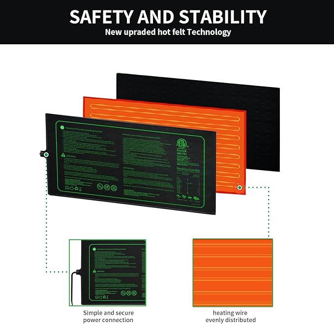 - Certified Safety & Reliability:Ruyyi plant warming mat with ETL listed,Conforms with UL 499, Conforme à la norme UL 499,CSA C22.2 No64