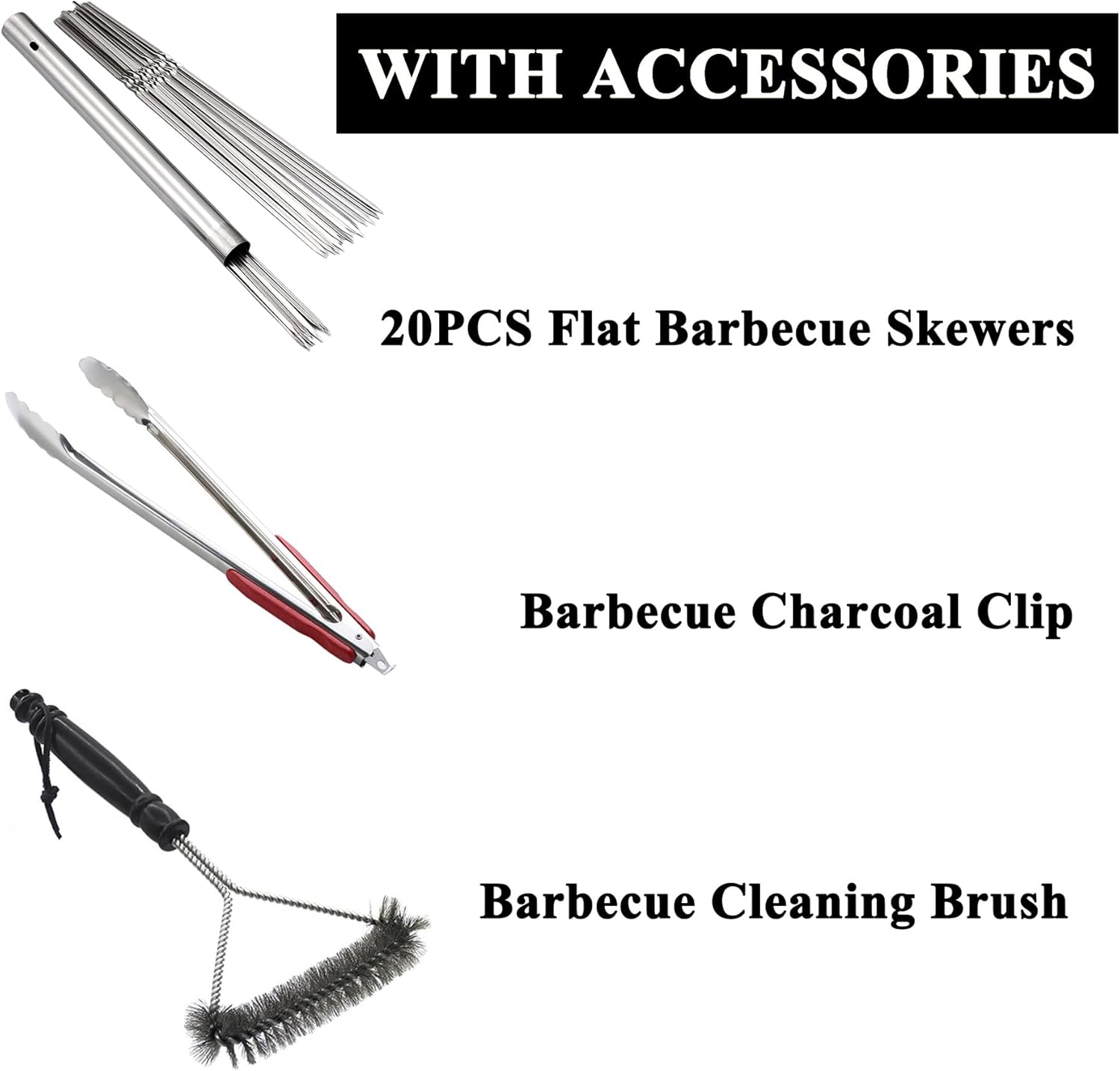 - 【With Barbecue Accessories】Equipped with 20PCS reusable 13.2 "/33.5cm long stainless steel flat barbecue skewers with portable metal storage tubes.There is also a barbecue charcoal clip and a barbecue cleaning brush.you can make delicious kebab, yakitori and Chinese lamb skewer as soon as you receive it.