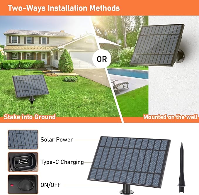 - Power Source : Solar Power & USB Charging Power