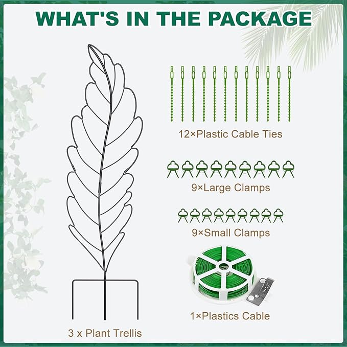 - Optimal Size for Various Spaces: Measuring 59"H x 16"W, our leaf-shaped plant trellis is the perfect size for both indoor and outdoor placement. Its design ensures that your climbing plants receive the support they need to grow healthily and beautifully