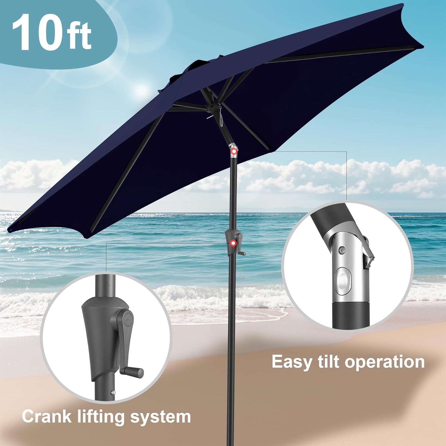 FLAME&SHADE 10ft Patio Umbrella - Outdoor Umbrella with 6 Sturdy Ribs, Push Button Tilt and Crank, UV Protection Table Market Umbrella for Pool, Porch,Garden, Deck, Backyard (Navy Blue)