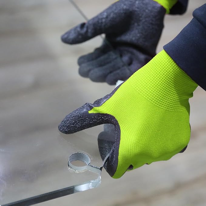 - ★ TEXTURED COATING—Latex/rubber palm and finger crinkle coating, provides Anti-slip, Cut and Puncture resistant and repels light liquids.