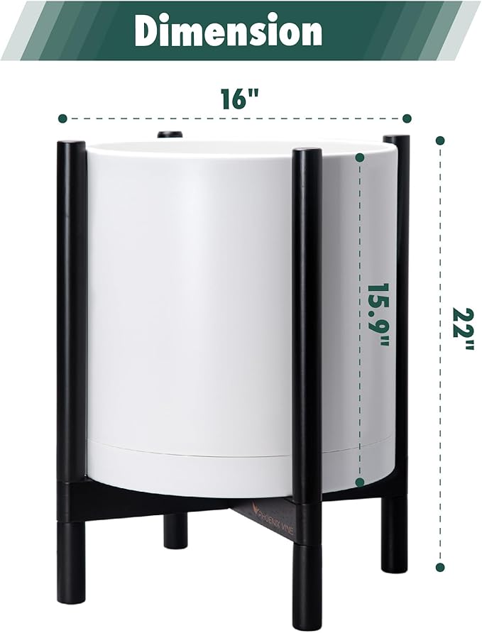 - A Complete Set: Minimalist plastic planter, combined with a sculptural, solid wood stand that match perfectly together and looks great in any home.