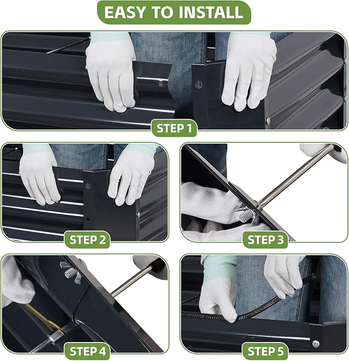 - 【 Safety & Reinforced Structure 】Metal raised garden bed Double-folded edges with included rubber trim protect hands from sharp corners. Thicker 0.7mm steel prevents planter bed warping under heavy soil pressure.