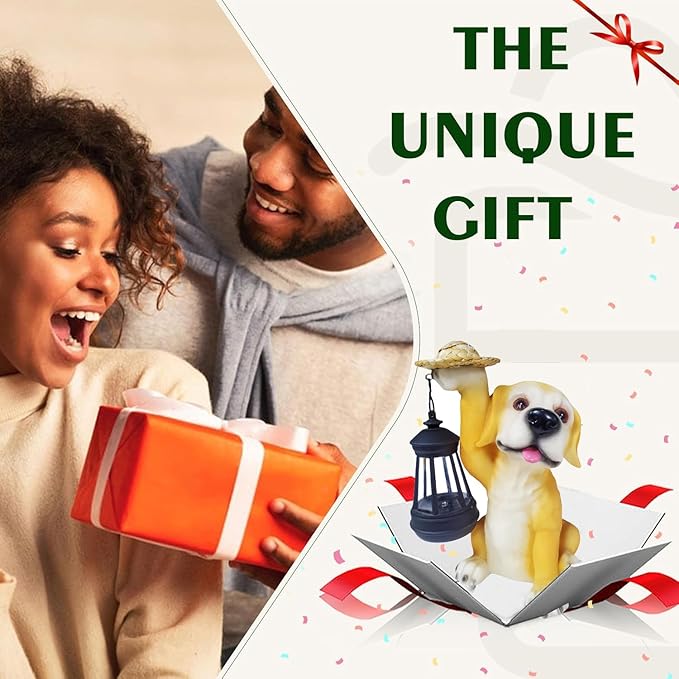 - Solar LED Lantern: These garden dog statues come with a built-in solar LED lantern that automatically illuminates at dusk. This energy-efficient lighting solution provides a warm, inviting glow to your outdoor space without the need for external power sources, enhancing your garden’s nighttime ambiance.