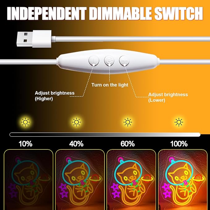 - Vivid Color Display: The cat bubble tea neon light illuminates in a beautiful mix of colors, including soft pastels and bright tones, making it an eye-catching piece that adds a lively, cheerful ambiance to bedrooms, living rooms, cafรฉs, or even bubble tea shops.