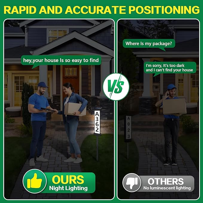 - IP65 Waterproof & Versatile Application: Constructed with high-quality ABS material and designed with IP65 waterproofing, it can withstand harsh weather conditions and continue to operate seamlessly. This home address signs for house can be mounted on mailboxes, houses, signs, gardens, and yards, making it suitable for a variety of applications and settings. For any inquiries about the product, tell us directly!