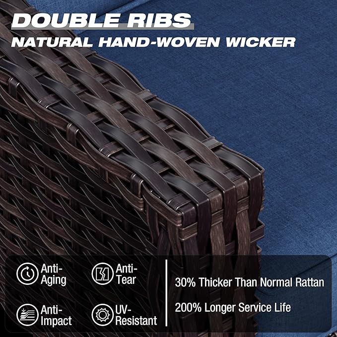- Premium Frame & Wicker: The Patio wicker chair made of high-quality handwoven wicker rattan, durable and not break easily for all-weather use, frame made of powder coated steel frame ensures good strength and stability