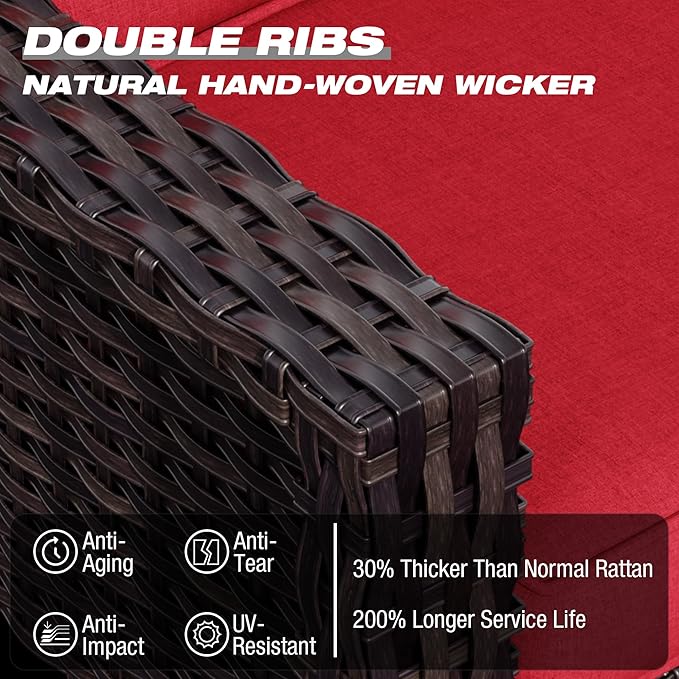 - Ergonomic Design: Our outdoor wicker chairs are upgraded to a larger size to bring you more extraordinary comfort. The ergonomic curved backrest and wider armrests provide better support for your neck and arms