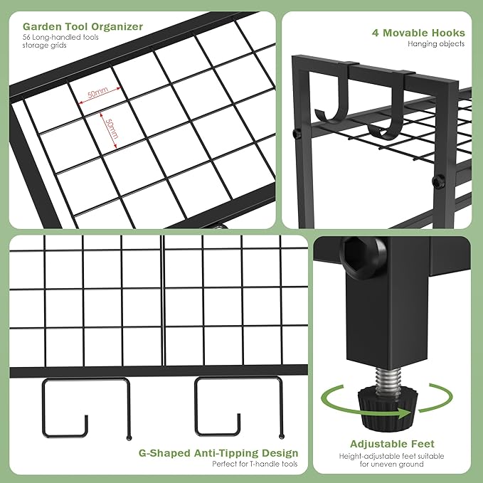 - Multiple Garden Tool Storage: garden tool rack is versatile for use in places such as garages,gardens,sheds and yards.The organizer for gardening tools simplifies the classification,arrangement and utilization of tools