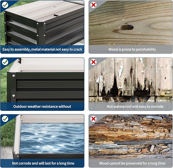 - 【Rust-Resistant Raised Beds】 Featuring a protective coating, these raised garden beds won’t rust, even in damp conditions. Enjoy a corrosion-free garden bed that stays functional and attractive for years.