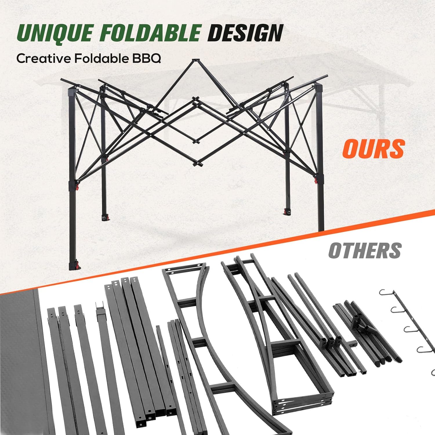 - 2 SIDE SHELVES : Each side comes with a metal grid shelf to keep drinks and food. The frame also includes a built-in bottle opener and hooks for your convenience.