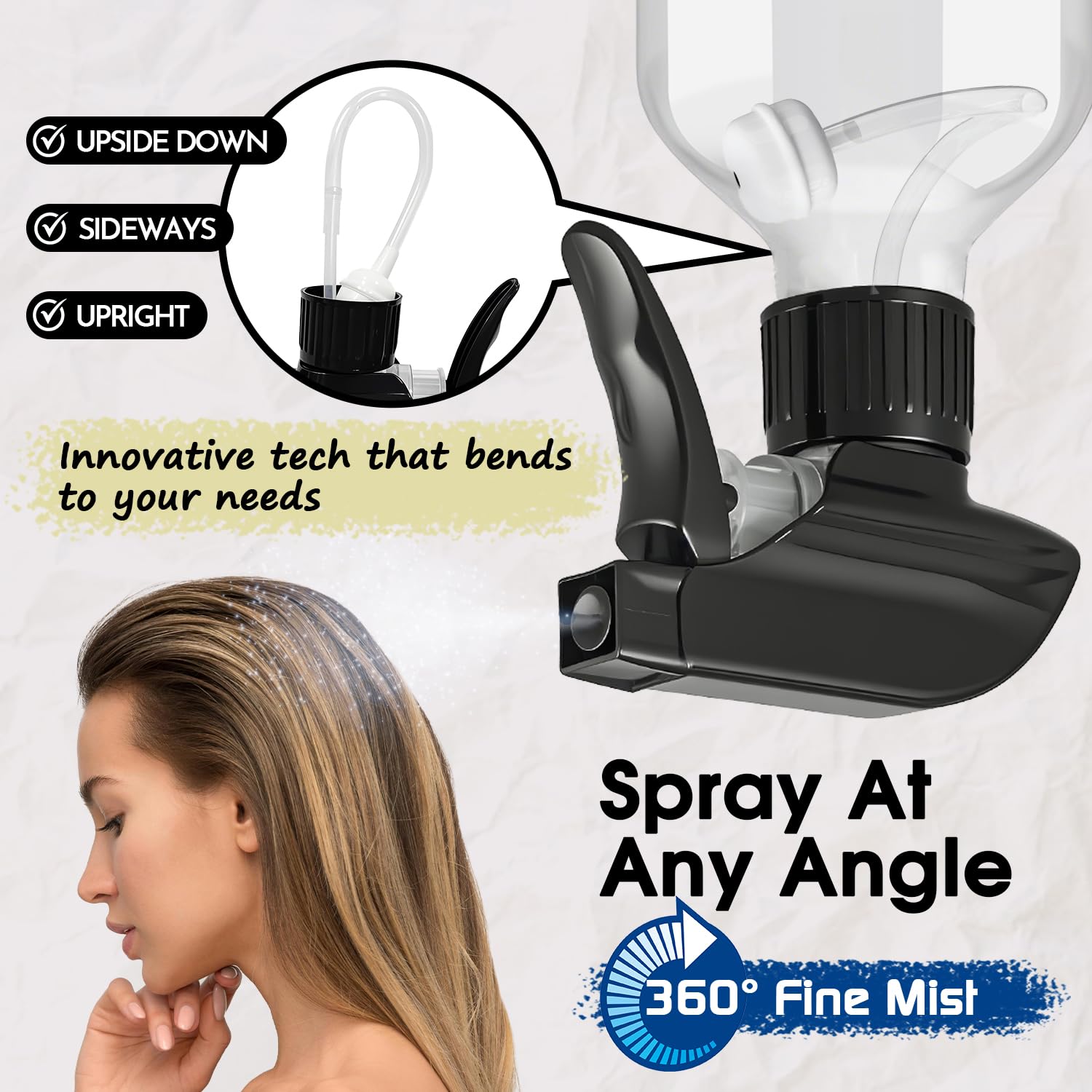- 【Spray from Any Angle】- You will get 2 packs clear plastic spray bottle for daily use. Our spray bottles allow for upside-down, sideways, and upright spraying, ensuring every drop is used efficiently. The straw is equipped with a gravity ball to facilitate multi angle spray, such as the scene where the bottle needs to be tilted or inverted. You can refill liquid when the liquid level is low, or adjust the position of gravity ball by shaking the bottle to obtain a better spray effect. The combination of the trigger sprayer and gravity ball is also suitable for 500ml bottles.