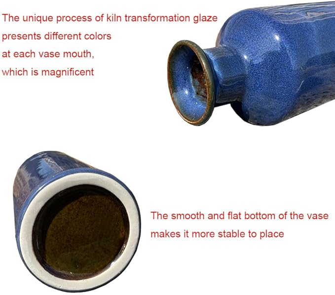 - Advantages: This vase uses kiln enamel technology, and each one has a unique and exquisite pattern, which is very beautiful bright glaze color(Blue),you can use it on its own as a beautiful piece, or add faux flowers, stems, bouquets and greens for a pop of color. Office Use, Living Room Decoration, Fireplace, Bathroom, Laundry Room, Coffee Table, Restaurant, Shops, Ideal Book Shelf Decor, Flower Arrangement Decoration ShootingProps, Ceramic Simple Vase, Modern Farmhouse Decor, Wonderful table centerpieces for Wedding, Graduation, Party.