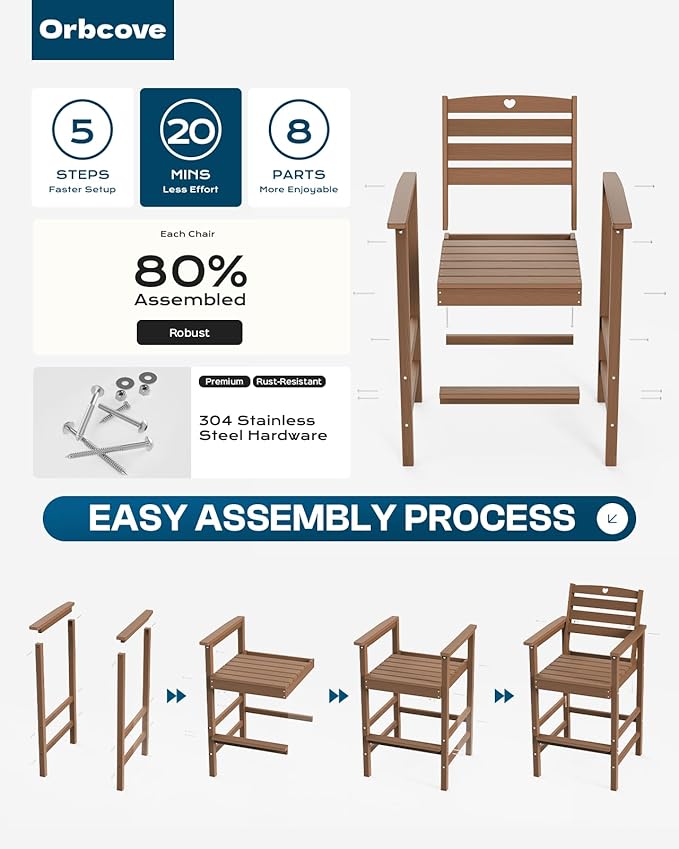 - Durable All-Weather Design: (Please note!!!Your order consists of two or three separate packages, which may be delivered at different times.) Crafted from HDPE with a natural wood grain finish, Orbcove bar table and chairs set withstands sun, rain, and wind without fading or cracking. Ideal for deck furniture, backyard furniture, or porch furniture, it’s perfect for year-round outdoor living.