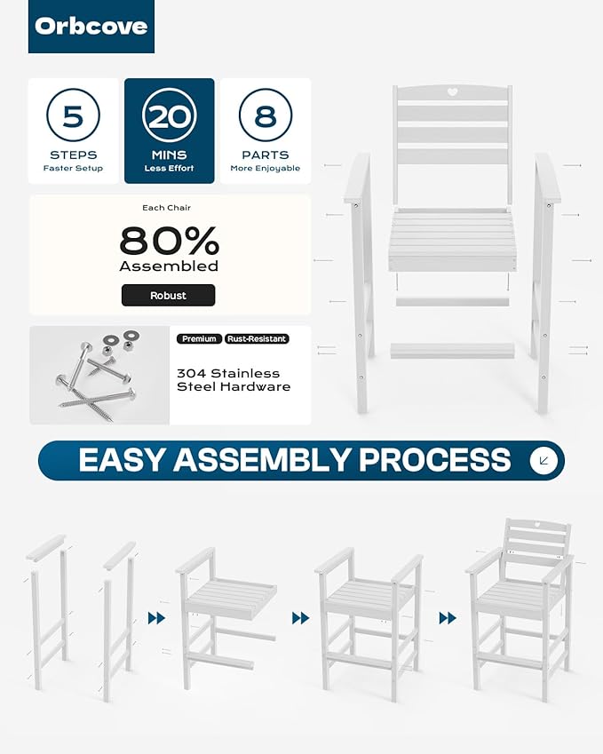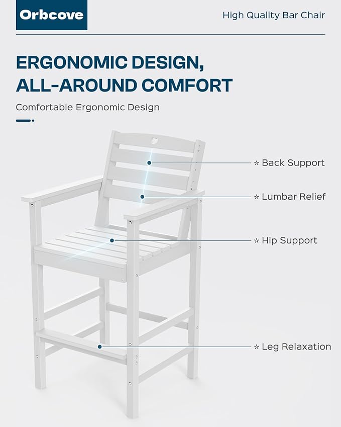 - Durable All-Weather Design: (Please note!!!Your order consists of two or three separate packages, which may be delivered at different times.) Crafted from HDPE with a natural wood grain finish, Orbcove bar table and chairs set withstands sun, rain, and wind without fading or cracking. Ideal for deck furniture, backyard furniture, or porch furniture, it’s perfect for year-round outdoor living.