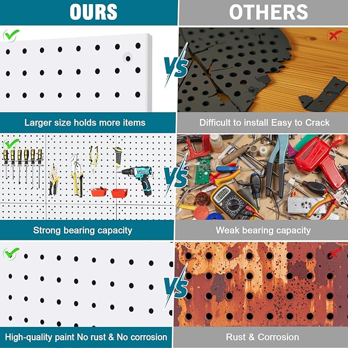 - 1.[High-Quality] The pegboard is constructed from high-quality steel, providing strength and durability
