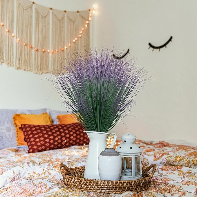 - 【VIVID FAKE GRASS STEMS】 Faux wheat grass is an ideal companion for indoor plants or rustic greenery. You don’t have to worry about mosquitoes brought by real grass. It resists UV rays and remains a vibrant green all year round and will keep a fresh look for years to come.