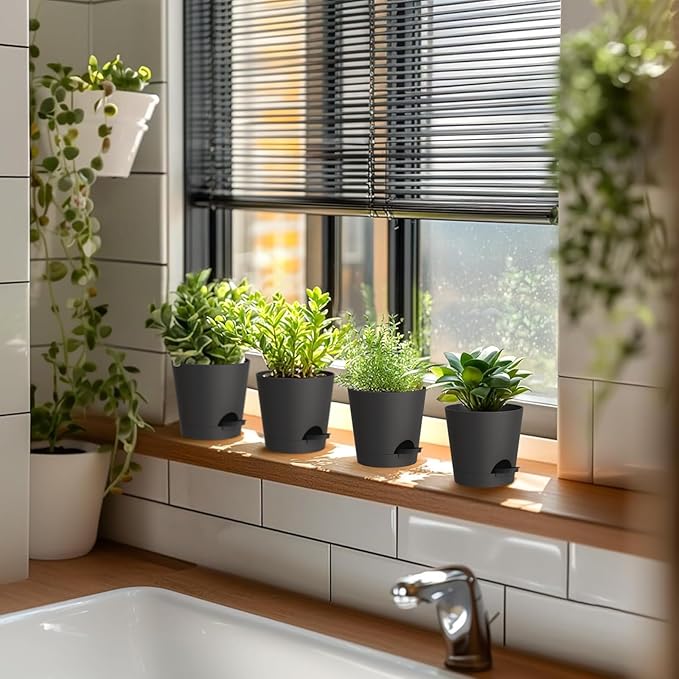 - 【Self-Watering Design】These 4 inch self watering pots for indoor plants are designed with a wick rope that draws water from the reservoir at the bottom. The set of 6 plastic self watering planter provides an optimal air circulation system for plant roots