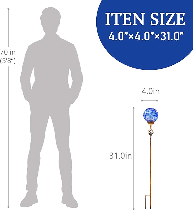 - HANDCRAFTED GLASS DURABLE: Our decorative plant stakes are made of beautiful and intricate color infused by hand blown glass, UV treated to prevent fading, and are designed with a striking metal tip for added elegance and resistance to outdoor elements; Our premium materials ensure our decorative stakes are able to withstand a wide range of outdoor weather conditions