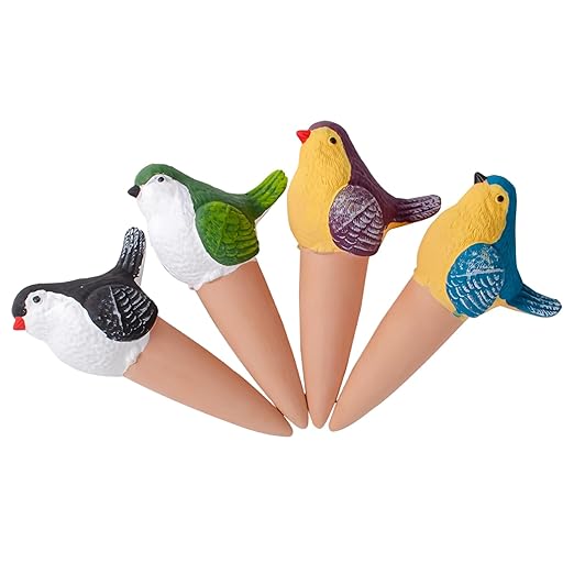 4 Pack Plant Watering Devices, Magpie Shape Terracotta Watering Spikes, Vacation Self Watering Planter Insert, Automatic Plant Waterer for Indoor Outdoor Plants (Smart Magpie)